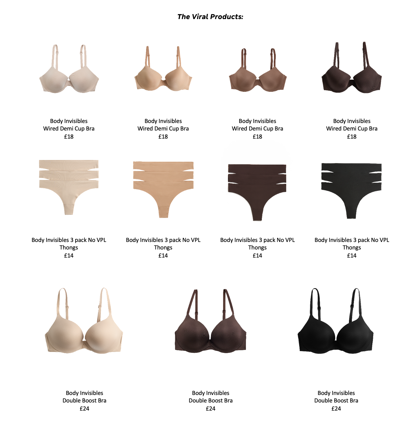 • No VPL knickers, padded and non-padded bras, even sculpting for bums